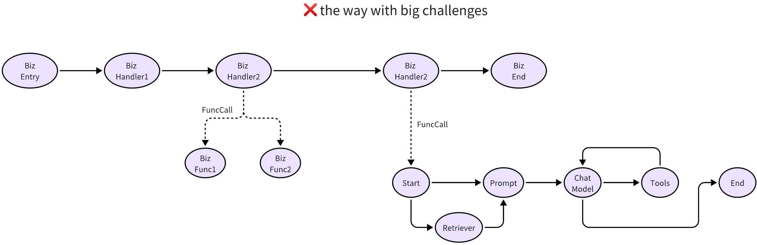 When people hear the term “Graph Orchestration”, their first reaction might be to segment and layer the implementation logic of the entire application interface, and convert it into an orchestratable Node. The biggest problem encountered in this process is the issue of long-distance context passing (variable passing across Node nodes), whether using the State of Graph/Chain or using Options for transparent passing, the entire orchestration process is extremely complex, far from being as simple as directly making function calls.