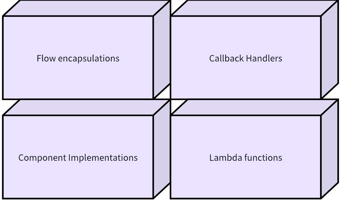 Based on clear component definitions, we believe LLM application development has universal foundational capabilities, including but not limited to: stream programming capabilities for handling model output; Callback capabilities supporting cross-cutting functionality and exposing component internal states; and option extension capabilities for component implementations beyond the component interface definition.