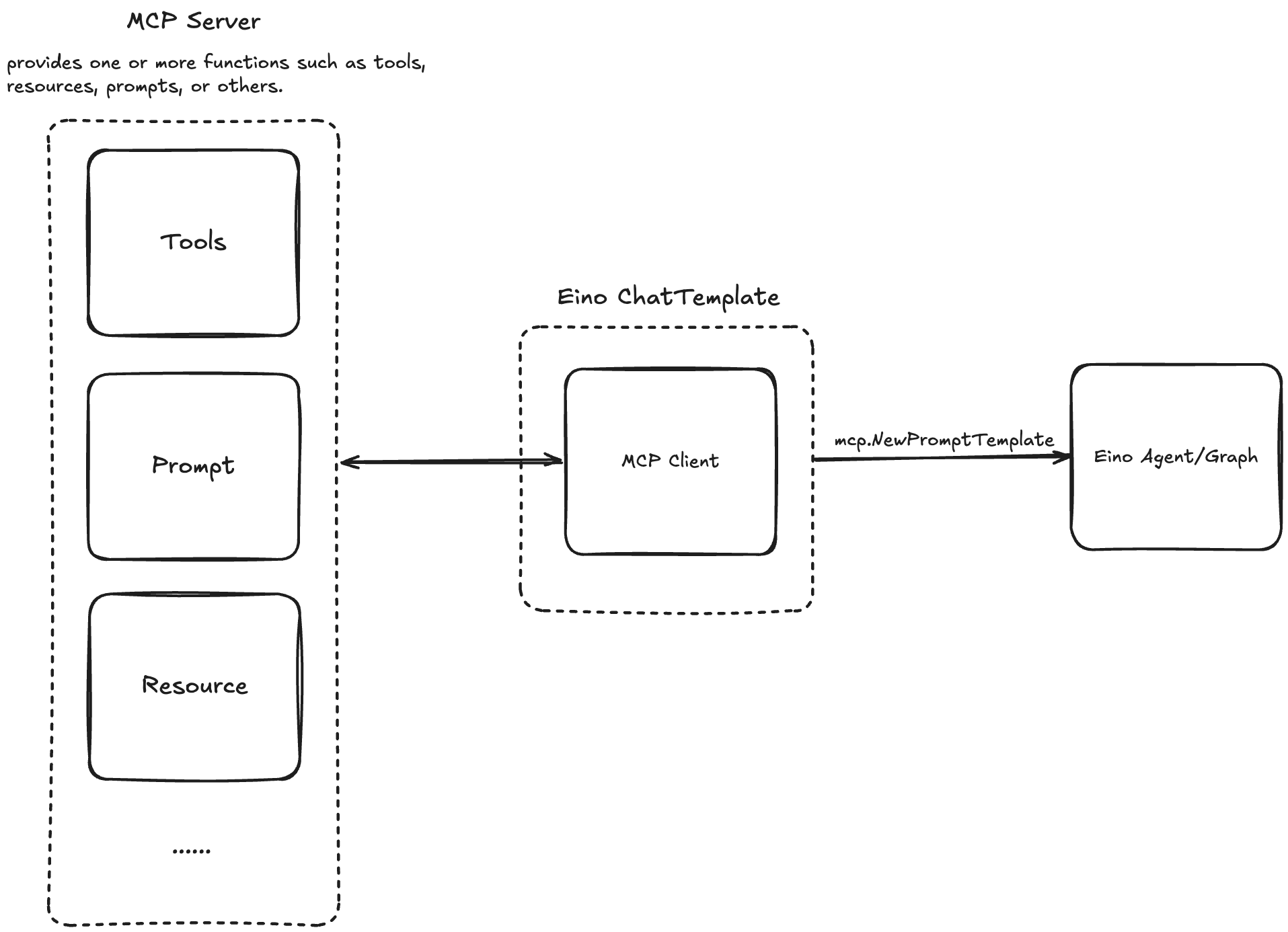 本节介绍 MCPPrompt 的封装,封装实现了 Eino ChatTemplate 接口(详见 Eino: ChatTemplate 使用说明)。